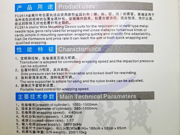 FU281A金屬針布包卷器(變頻一套)的產(chǎn)品詳細(xì)介紹: